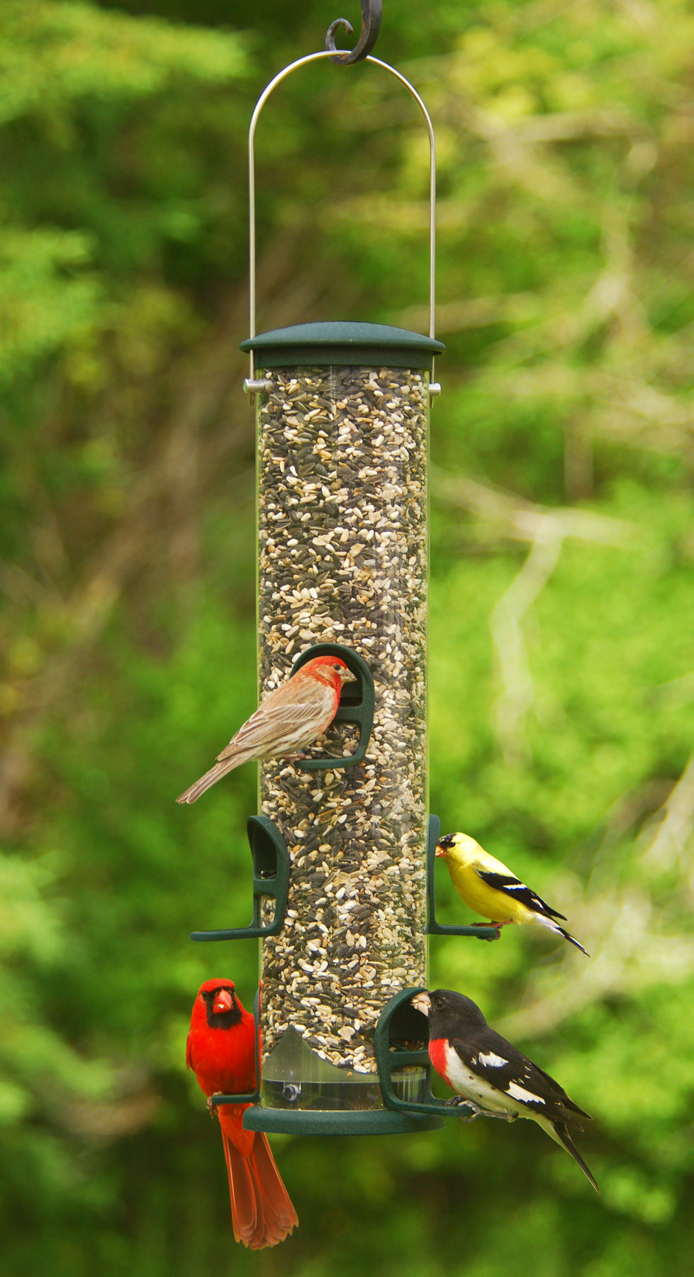 Big Tube seed tube feeders can be filled with a variety of seed types such as Sunflower, safflower and specialty seed blends. Aspects’ Quick-Clean Seed Tube Feeders featuring heavy die-cast metal caps, bases, and a clear UV stabilized polycarbonate tube combine to make these feeders an investment that lasts a lifetime. Customers will appreciate the convenience of easily removing the Quick-Clean base without the need of tools even with a seed tray attached. A built-in seed deflector in the base allows birds to remove every last seed. The metal cap lifts and pivots easily for filling and cleaning. Backed with a Lifetime Guarantee.