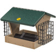 Attract a variety of beautiful birds to your yard with this medium recycled hopper bird feeder with suet cages. This bird feeder can be mounted to a 1" pole with our mounting flange (#1202) or this feeder can be hung with our 15" hanging cable (C15). The Feeder holds roughly 3 lbs of seed and two standard suet or seed cakes. This combination setup is great for Chickadees, Nutchatches, Cardinals, Purple Finches, Titmice, Jays, Bluebirds, Woodpeckers, House Finches, Towhees.