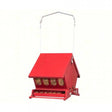 Double sided feeding attracts more birds. Adjustable weight setting on spring operated perch closes access to seed. No waste seed saver baffle. 4 lb. mixed seed capacity.