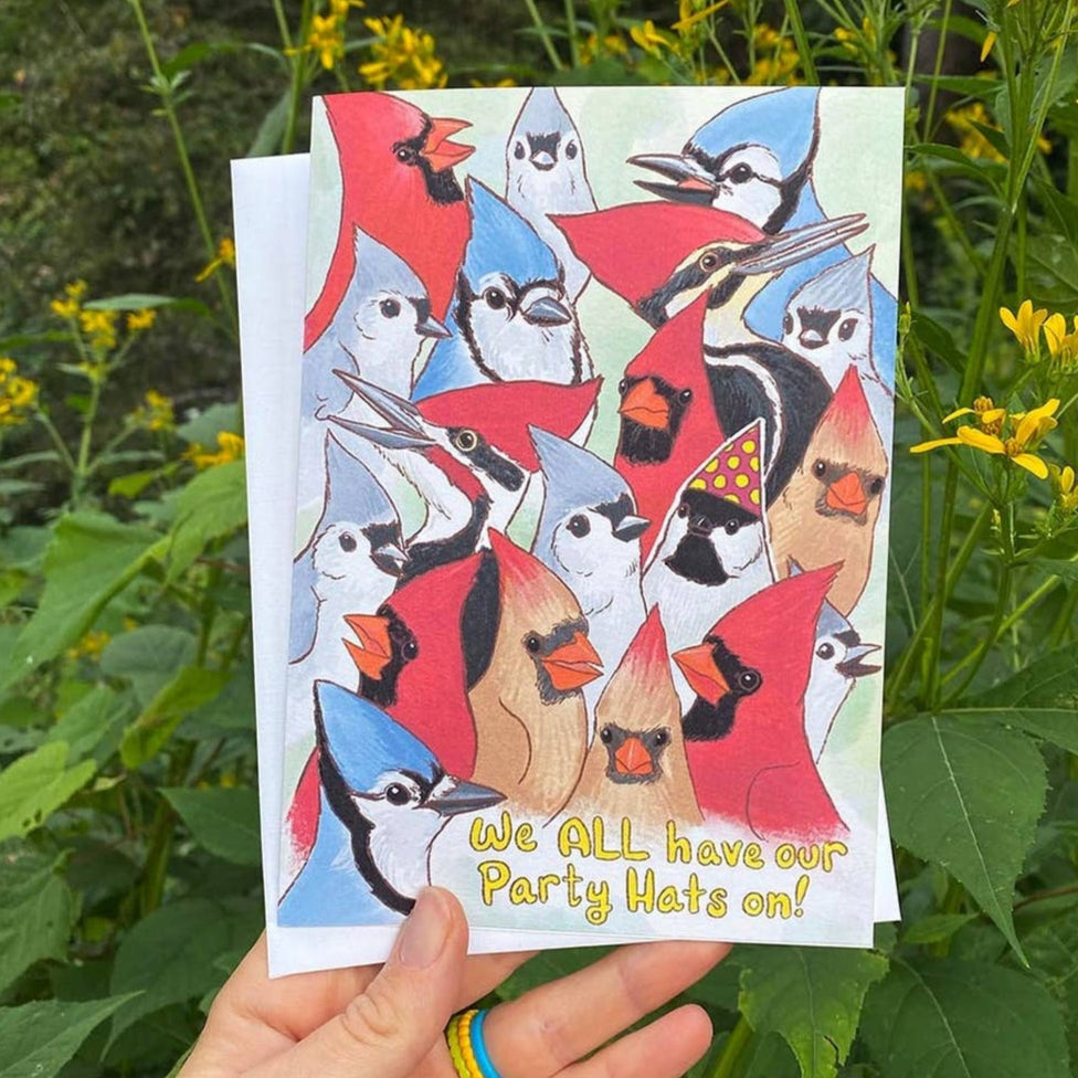 Printed on sustainable card stock paper. The card is 5" x 7" and comes with a recycled white envelope.