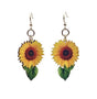 Vibrant sunflower earrings featuring a high resolution image on the front with a natural wood back. Made from sustainably sourced wood and 90% recycled display cards. The laser cut wood is ulatra lightweight making them comfortable to wear all day. Ear wires are silver-finished 304L stainless steel, hypoallergenic, and enhanced with a new, smooth and consistent electrophoretic coating that resists tarnishing.