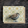This note card is a reproduction of an oil painting on wallpaper. The image is printed on textured recycled paper at a local wind-powered print shop.