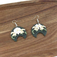 White Flowers Dk Green Polymer Clay Dangle Earrings