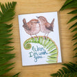 This Wren Friends "Wren I'm with You" greeting card measures 5.5"x4.25", is printed in the artist's home studio on 100% recycled card stock paper, and is paired with a 100% recycled kraft brown envelope. This card would be a perfect Valentine! Inside is blank.